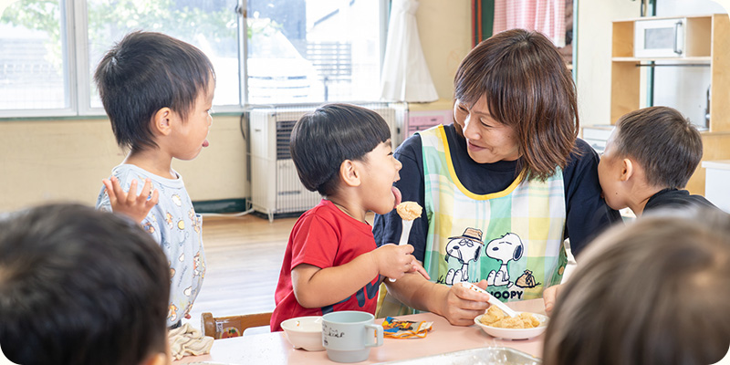 - 調理員:園児・職員の給食調理、盛り付け、片付け