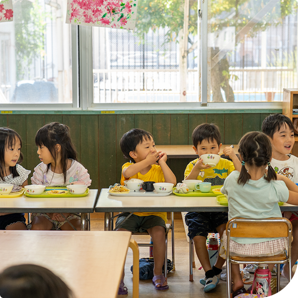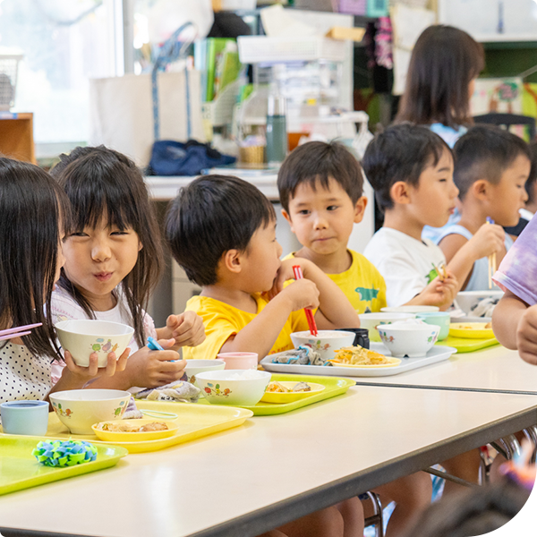 「おいしいね」と顔を見合わせながら食べることで、食事の時間がより特別なものになります。バランスのとれた食事で、子どもたちの元気を支えています。