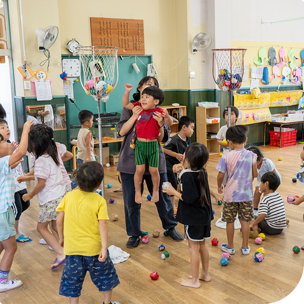 あそんで、たべて、ねむって。保育園での毎日は、そのひとつひとつが「まなび」につながっています。おともだちといっしょにすごすことで、思いやりや協力する心が育ちます。「じぶんでできた!」の経験は、自信となり、つぎの一歩へとつながっていきます。わたしたちは、子どもたちが安心してのびのびと過ごせるように、毎日の生活をやさしく見守りながら、こころとからだの成長を支えています。