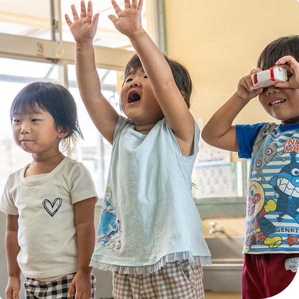 友だちと力を合わせて工夫したり、挑戦する中で達成感を味わいます。「考える力」「協力する力」が育ち、より豊かな表現や遊びが広がっていきます。